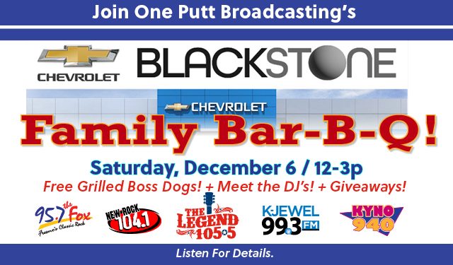 Mark your calendars for Saturday, December 6th when all of our One Putt stations hit the road for the Grand Opening of Blackstone Chevrolet’s Mega Used Car Center! Choose from over 500 cars, trucks and SUV’s of all makes and models that are priced and ready to sell! Plus, enjoy one of our famous BOSS DOGS, meet your favorite One Putt DJ, and more. We’ll be broadcasting live from 12pm-3pm. See you there, Fresno!